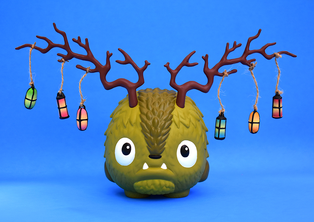 Luna stands 6.5 inches tall and 9.5 inches from tip to tip of her antlers. Made of vinyl and ABS plastic.