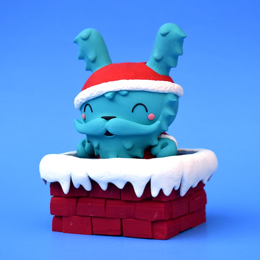 This monster is a customized Dunny completely covered and sculpted with polymer clay. He stands about 4 inches tall (10.16 cm).